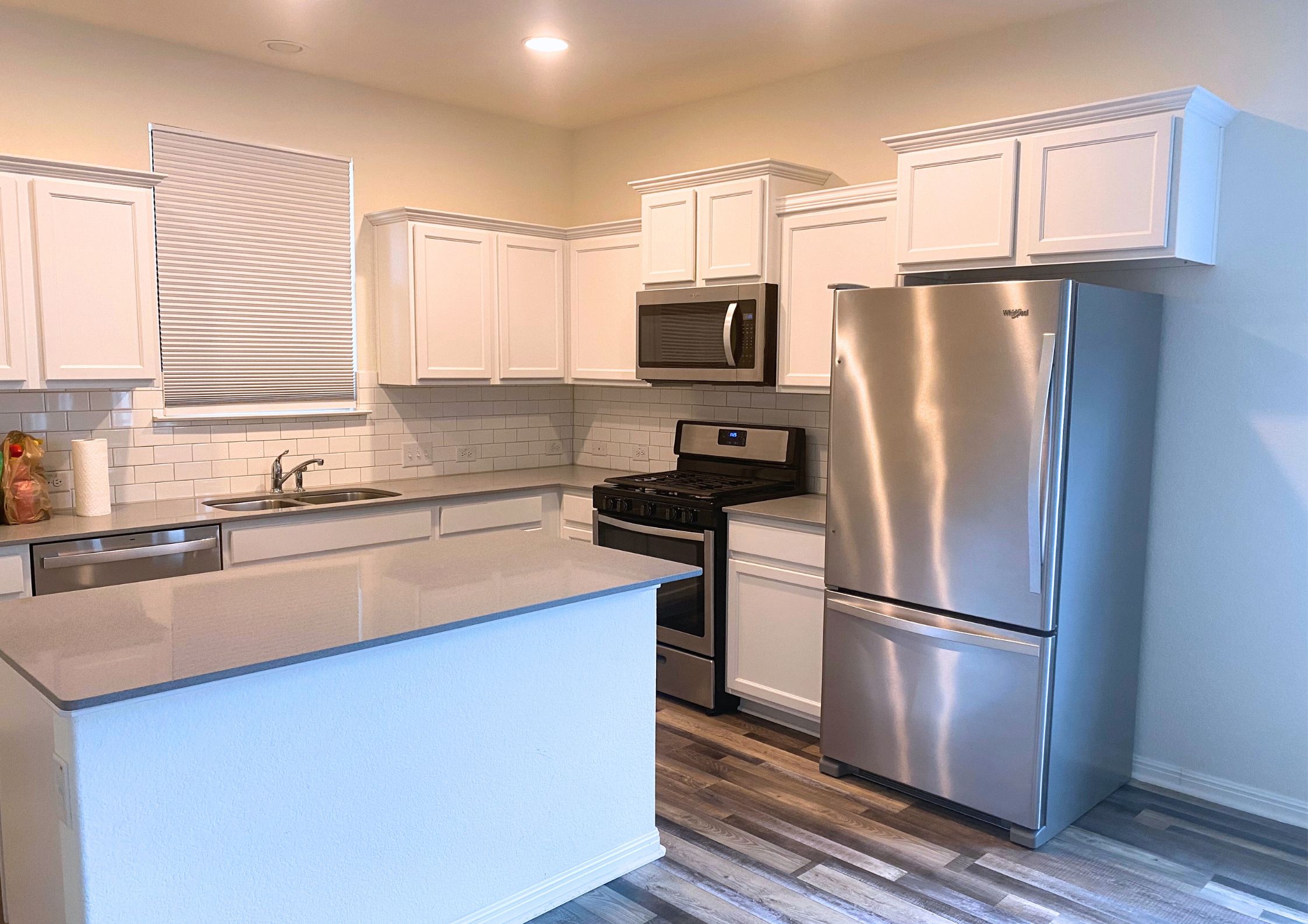 Welcome to your dream home! This charming residence boasts 3 bedrooms and 2 modern bathrooms, providing ample space for comfort and relaxation. The home features a convenient laundry closet equipped with both gas and electric hookups, making laundry day a breeze. Enjoy the convenience of a 2-car garage and a cozy, low-maintenance yard complete with a covered patio. Inside, the home is adorned with vinyl plank (LVP) flooring throughout, enhancing its sleek and contemporary feel. The kitchen features stainless steel appliances and an open concept design that flows seamlessly into the living room, creating a perfect space for family gatherings and entertaining guests. Ideally located just down the street from an elementary school, this home is nestled in a clean, vibrant community with plenty of access to parks for residents to explore and enjoy. Don’t miss the opportunity to make this beautiful house your new home!