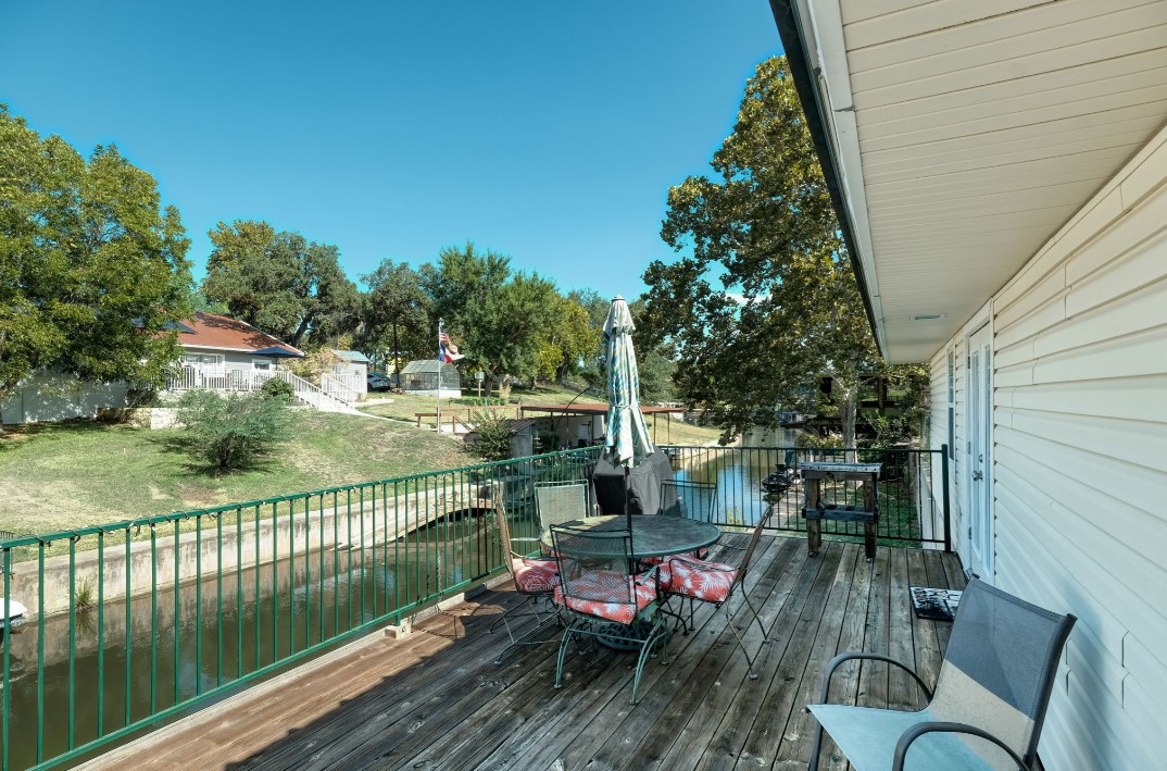 This lot is 120″ feet of waterfront with bulkhead and has beautiful mature trees, great St. Augustine turf and a well-maintained single-story lake house. This home is a 2-bedroom 1 bath, single story with a walk out patio overlooking the water. There is also a mosaic tile patio downstairs at the waterfront! Enjoy your boat house, covered boat lift, jet ski lift as well as your jet ski ramp! About 90 seconds to the main basin at idle speed! This home boasts granite countertops, induction range and oven and plenty of cabinet space in the kitchen. The laundry room has ample storage space as well as stackable washer/dryer hookups. The bathroom has a walk-in shower! Tile flooring throughout the entire house. This home has its own well and a grinder pump system that is maintained by the city! There is a large storage shed with electricity. The property also has an RV hookup for friends and family to bring their RV! 2020 Sea-Doo Fish Pro Jet Ski (22 hours), 2005 Hurricane Sun Deck with a 150 HP Yamaha motor (runs like a top), Small Camper (makes a great 3rd bedroom) all furnishings, dishes, etc.. (if wanted) convey with the sale. Twin Isles has a private boat ramp for its residents! The property is a perfect lake LBJ getaway and is MOVE-IN-READY! Take your keys and start living the lake life today! Adjacent 60 ft. waterfront lot may be available for separate sale.