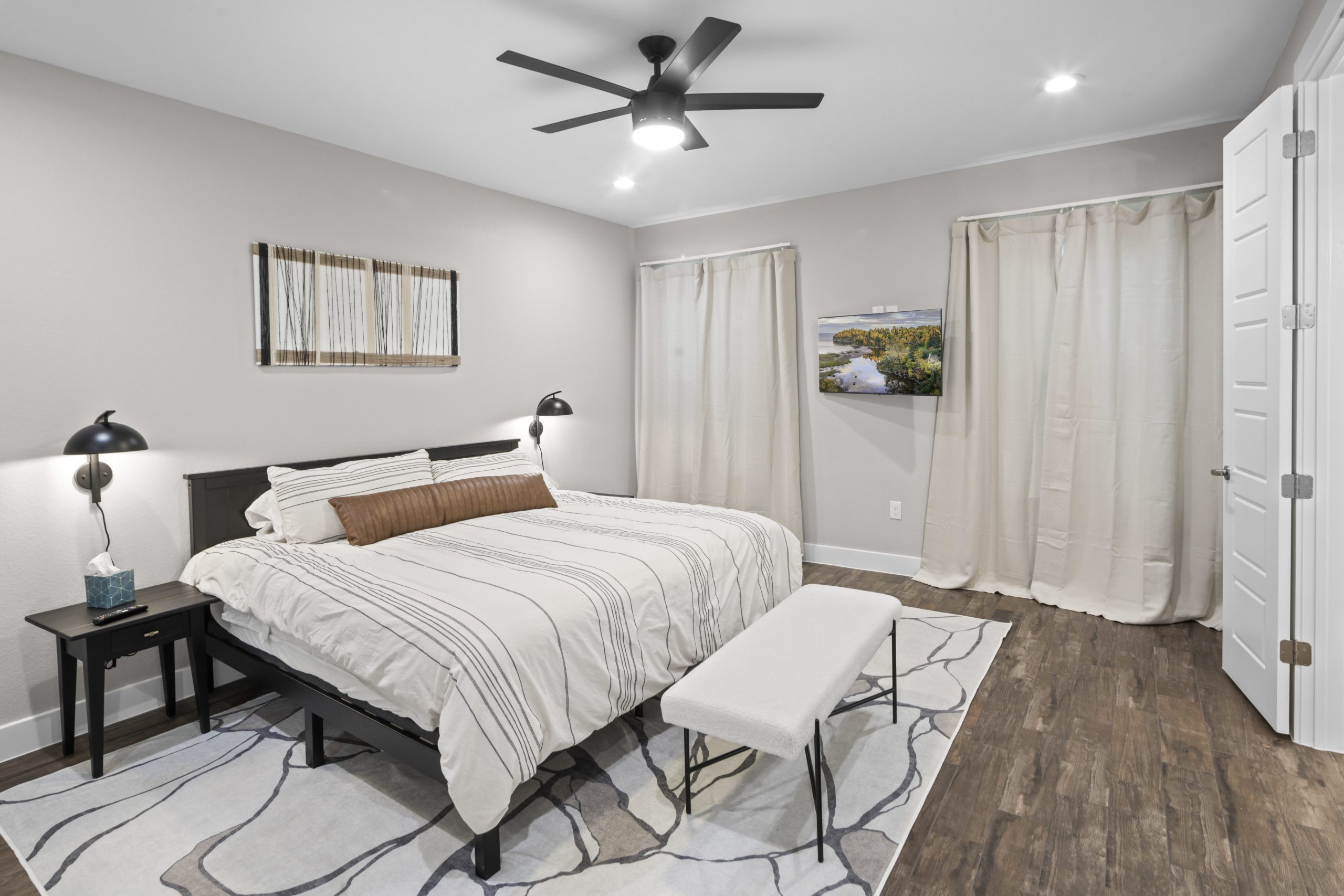 This stunning 2 bedrooms, 2 full baths w/ study/office, all sides masonry, Stucco/Stone home comes fully furnished, decorated and turnkey MOVE-IN-READY! (Furniture bought new in 2022) Features include combination exterior, brown metal roof, 8 foot wrought iron entry door, Front entry garage with cedar facing & opener, 8 foot metal back door with full lite blind insert, high ceilings throughout, recess lighting, 8 foot interior doors/ shaker style, Porcelain tile in kitchen, dining, all baths, utility & foyer, Carpet in all bedrooms & study, Rain head shower in master bath, Level 3 granite countertops in kitchen & baths, White porcelain farmhouse apron sink, 100% wood custom Shaker style cabinets/painted in SW Aesthetic White, Stainless steel appliances, Stainless Steel fixtures (lighting & plumbing), 3 colors for interior paint (trim, walls, ceilings), All white vinyl double pane low E windows, R-15 insulation in exterior walls and R-30 in ceiling, covered back patio with ceiling fan, full sod & irrigations throughout entire yard and flower bed at front window. SHORT TERM RENTALS OK! Community amenities including pool, pavilion and tennis courts which are all within walking distance. Grab your golf cart and cruise the community. Have a morning Tee time & enjoy the beautiful golf course. You are a short golf cart ride to the Applehead West neighborhood pool, cabana and tennis courts, plus the Caprock clubhouse, restaurant and pool (membership required) and two of the four members golf courses.